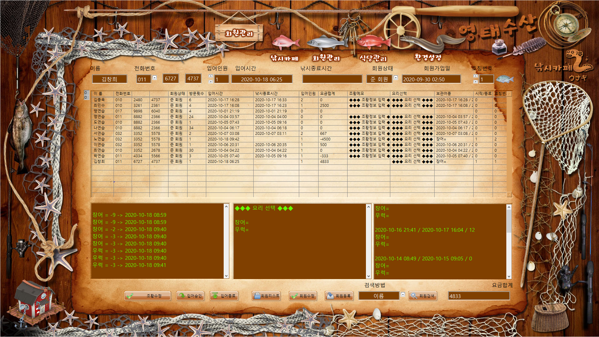 전자저울과 연동되는 실내낚시터 관리프로그램